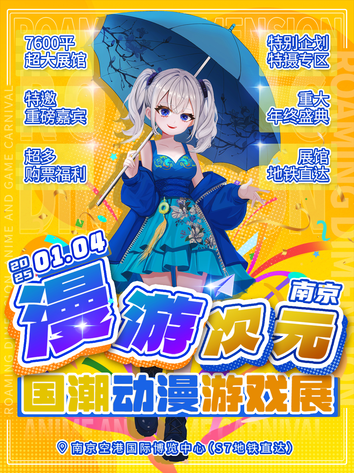 2025年1月4日,南京空港国际博览中心将迎来漫游次元×国潮漫展,嘉宾包括笑哥走丢了、昭君TOUCH、中二指挥官、小溪Liz、小师妹下山咯、Yisa小翼酱、不念长安等。早鸟票预售11月1日至11月30日,49r限时限量一个月。